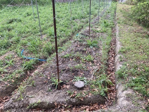午前、オクラの種をまきました。以前に、自家採種した種をまいたが少し発芽の状況が悪いので、購入した分を追加で播種しました。