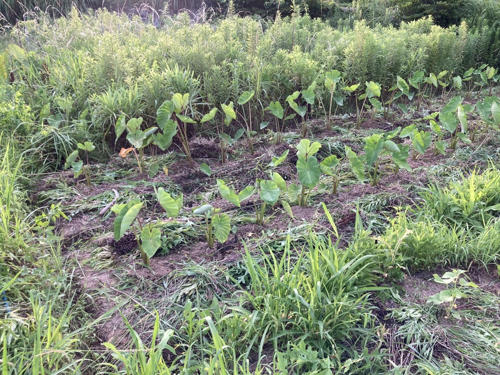 参考にキュウリと里芋の除草作業後の写真を載せてみます。