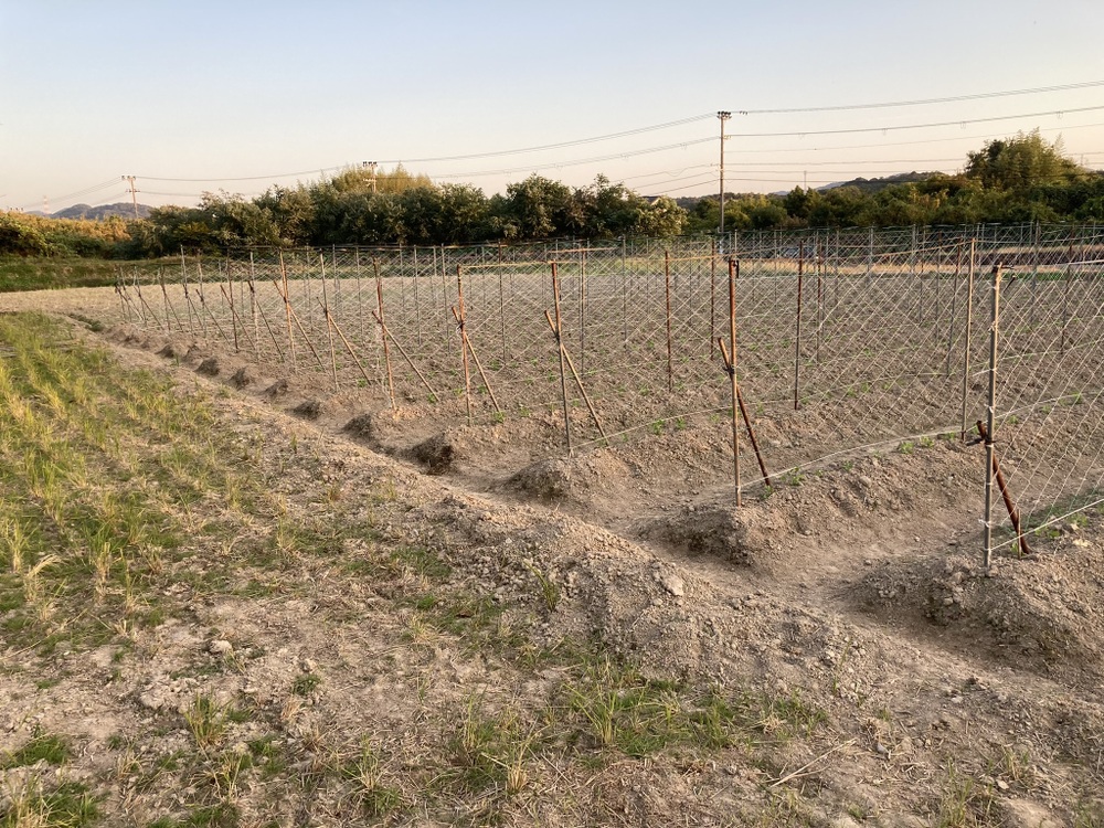 ウスイエンドウのネット張り終了しました。結構上手く張ることができました。