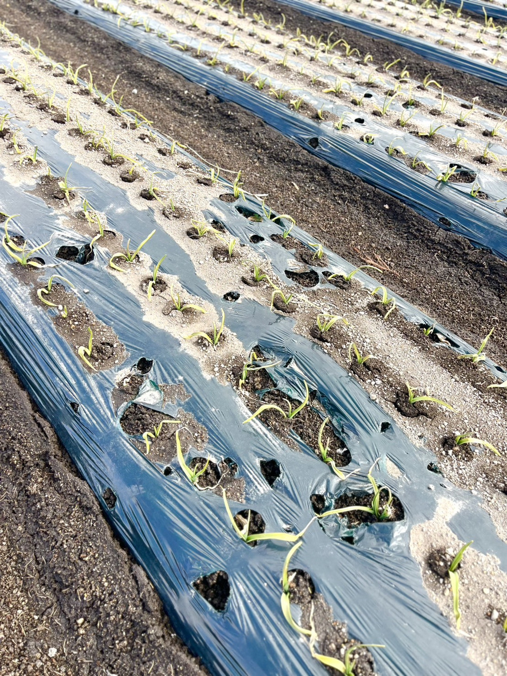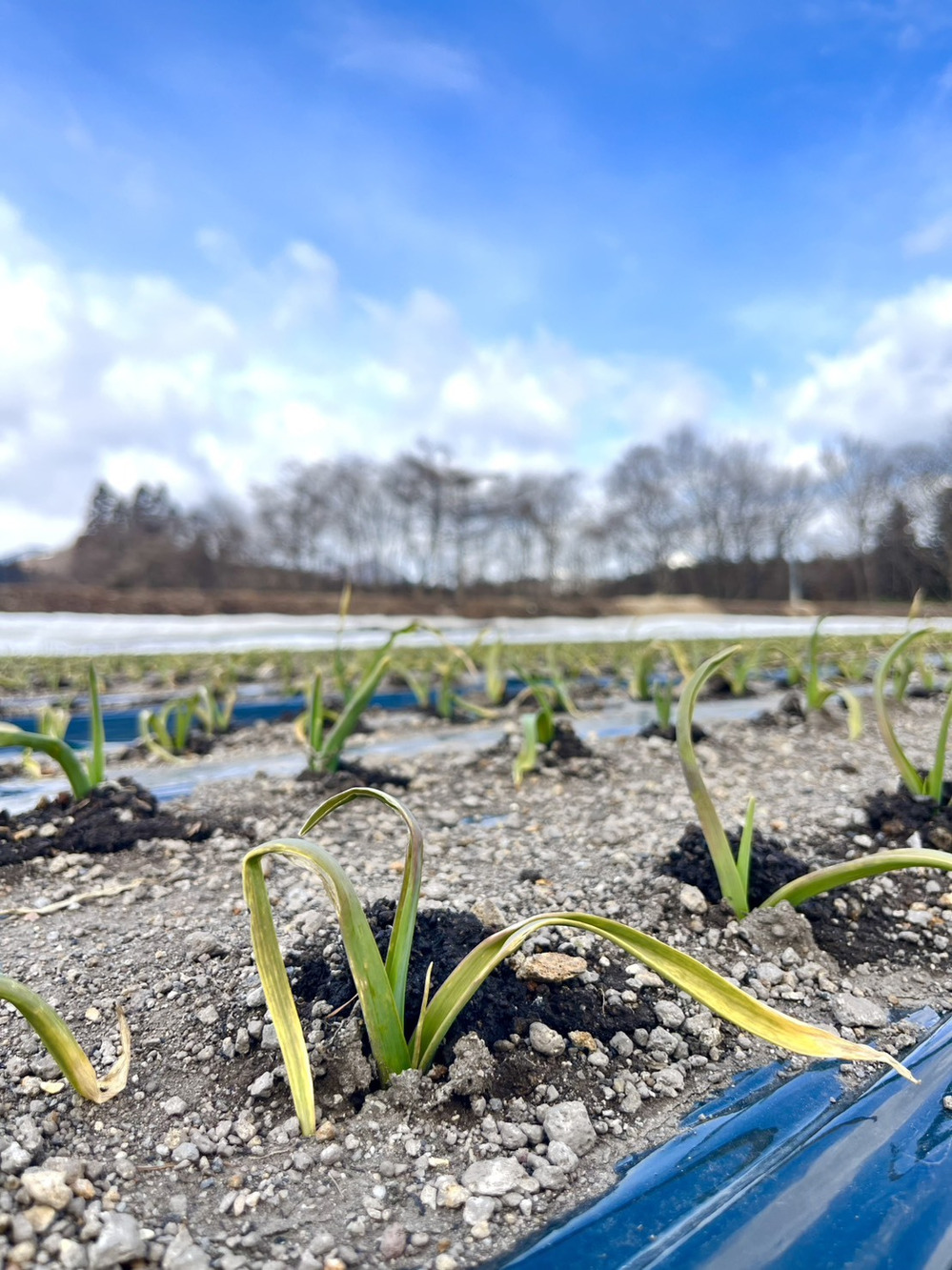 にんにくの葉っぱも雪で押しつぶされていたのが、太陽を浴びてピンと立ち上がってきました🌱