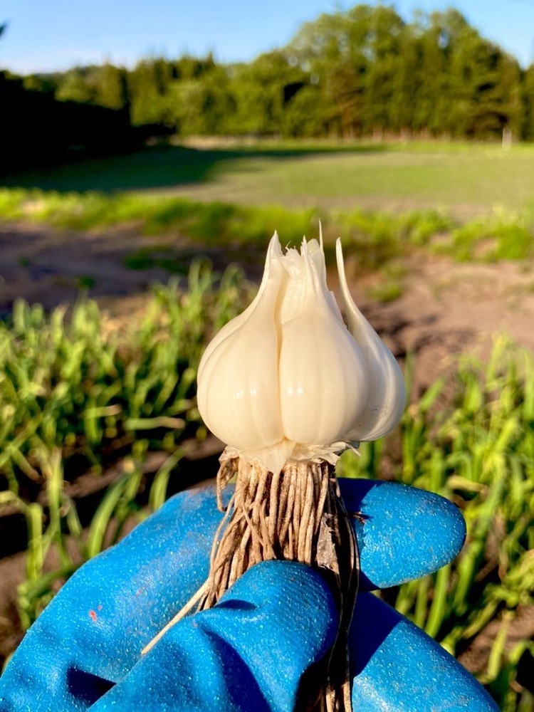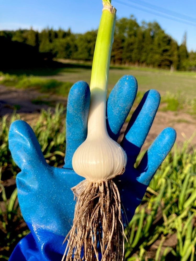 葉の状態が良くないものは見つけたら抜いているのですが、実は写真のにんにくは葉の状態が悪く捨てるものです💦