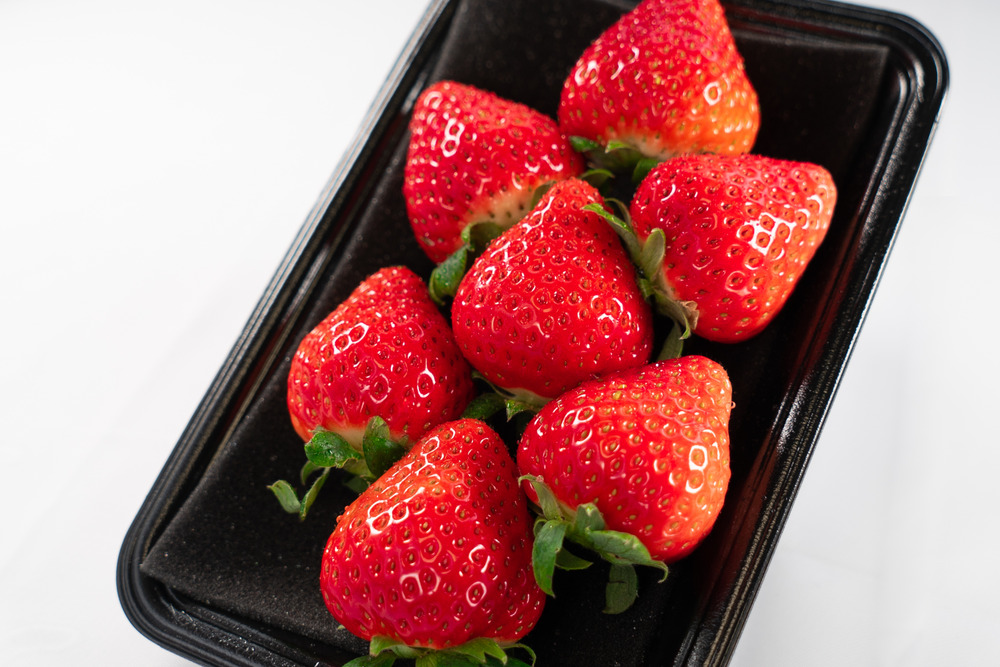 「恋みのりいちご」・・・口に入れた瞬間良い香りが広がりとにかく丸くて大きい。果実がぎっしり詰まっていてとてもジューシーであり、まるでももを食べているかのような食べ応えあるいちごです。