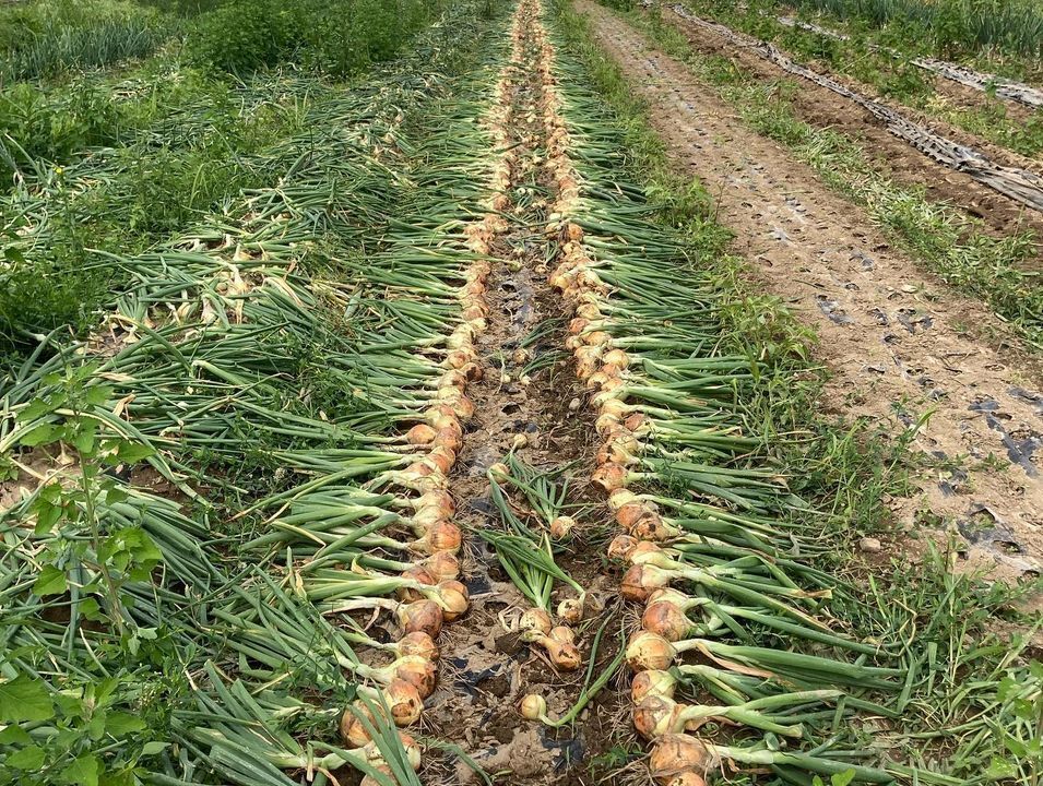 新玉ねぎ、発送開始します! 梅雨の晴れ間をぬって収穫作業を進めています♪ フレッシュな味わいで...