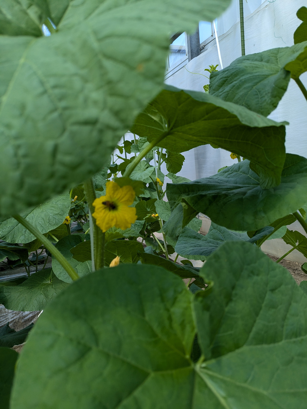 ミツバチ🐝が交配してくれて大人のメロン🍈になります。