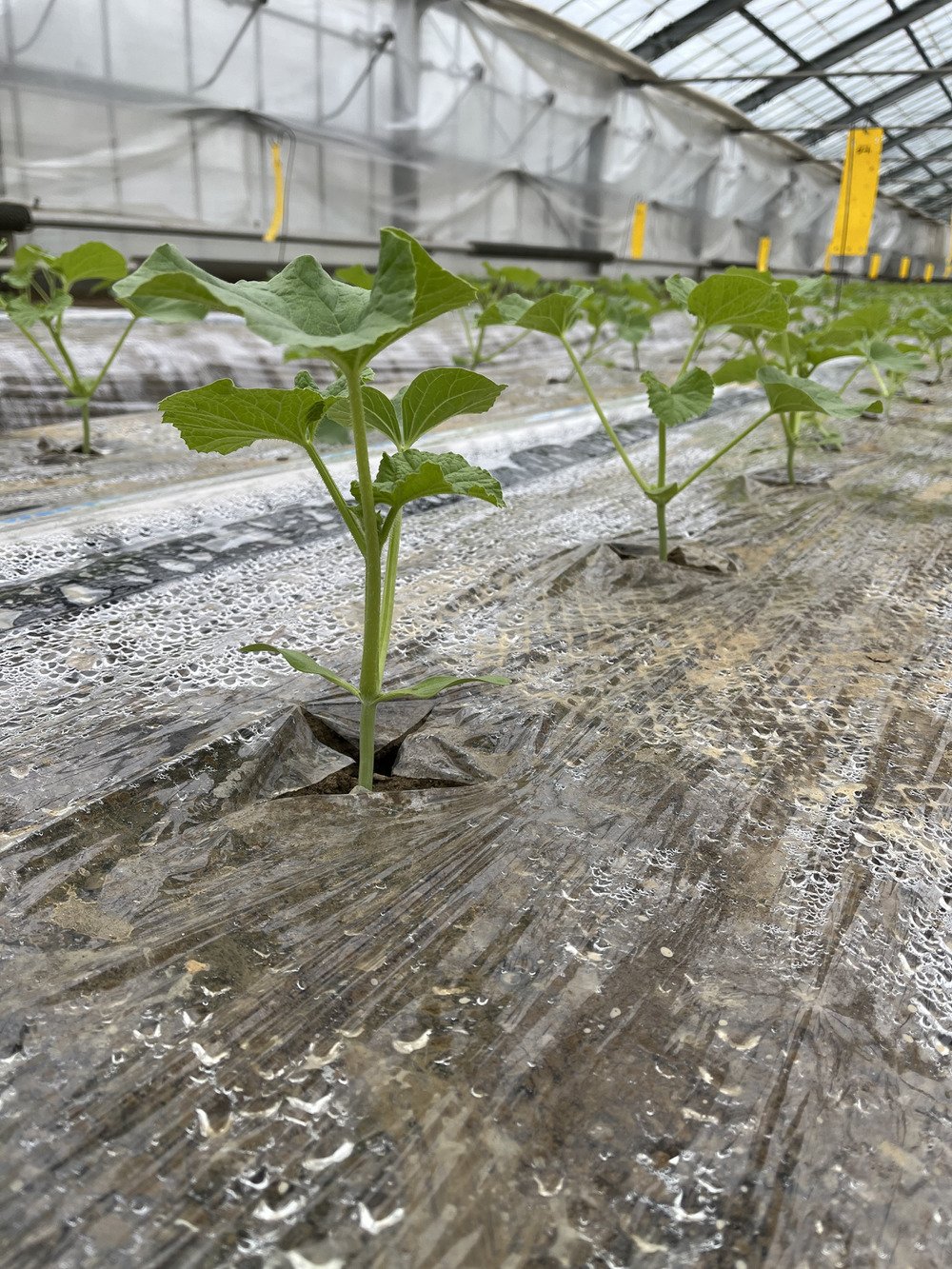 定植後の苗の植え傷みを防ぐためにハウス内の地温を18度以上に高めておきます。