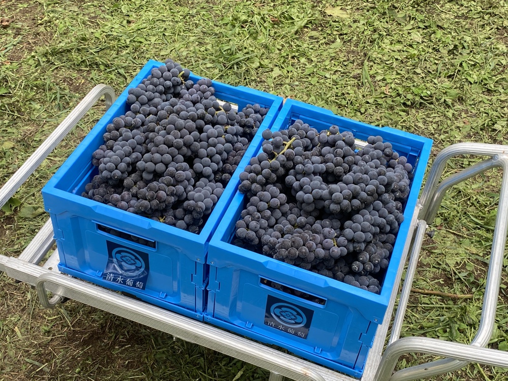 巨峰•シャインマスカットに先駆けて、ワイン用ぶどうの収穫が始まりました✂️