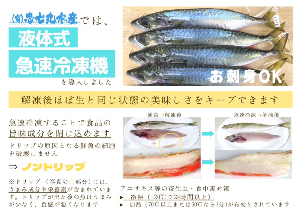 -30℃で急速冷凍するので、アニサキス等の寄生虫対策にも!!!