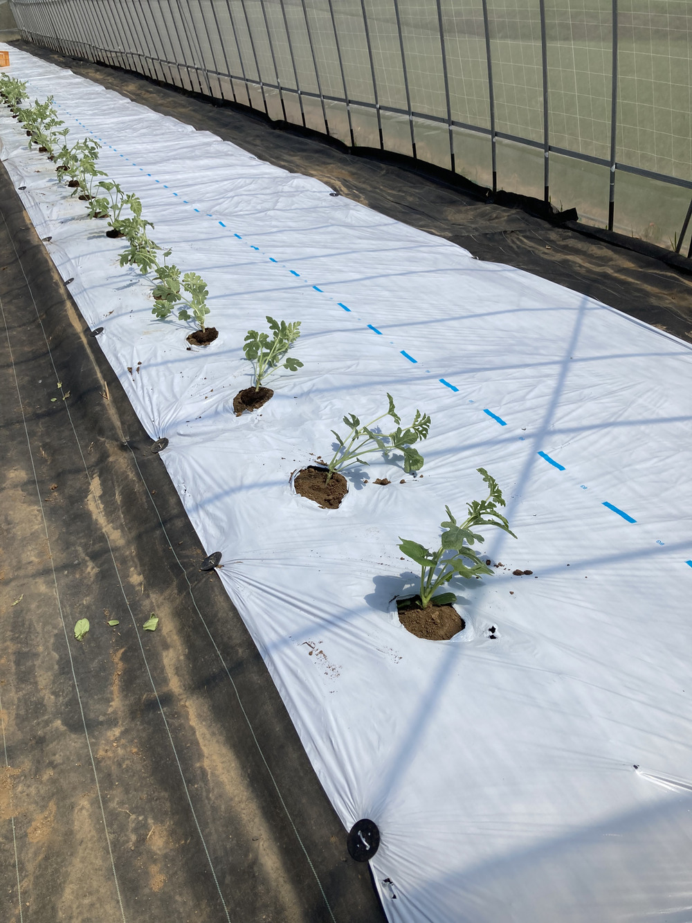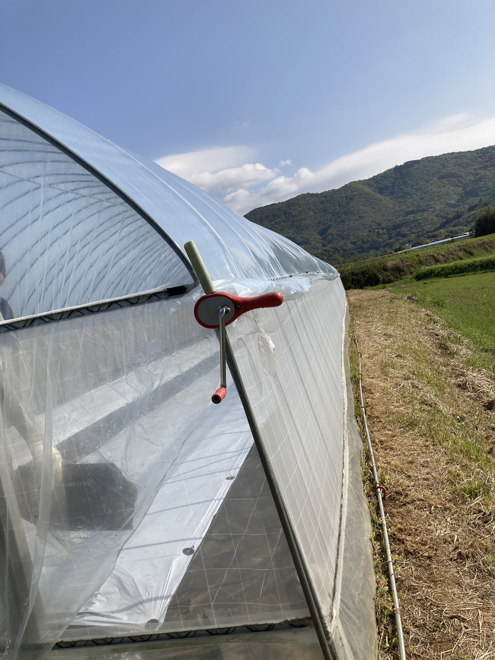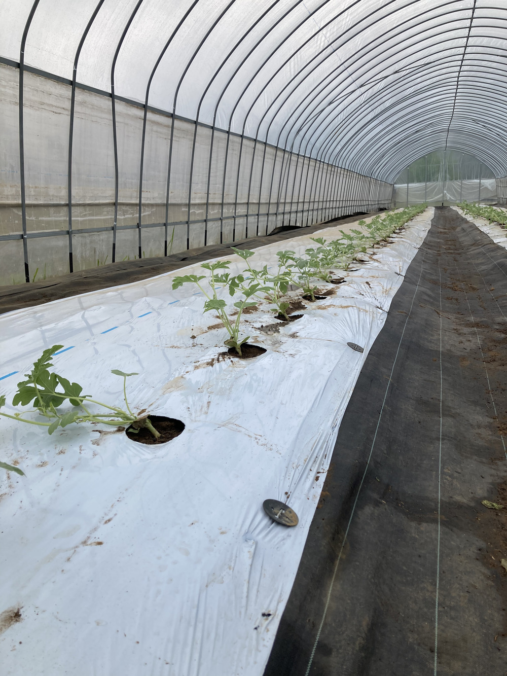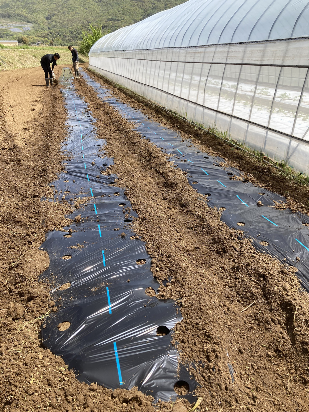 教えながらの農業なのでゆっくりではありますが、草刈り、土づくり、畝作り、マルチ 房総シート張りを終え、ビニール張り‼︎