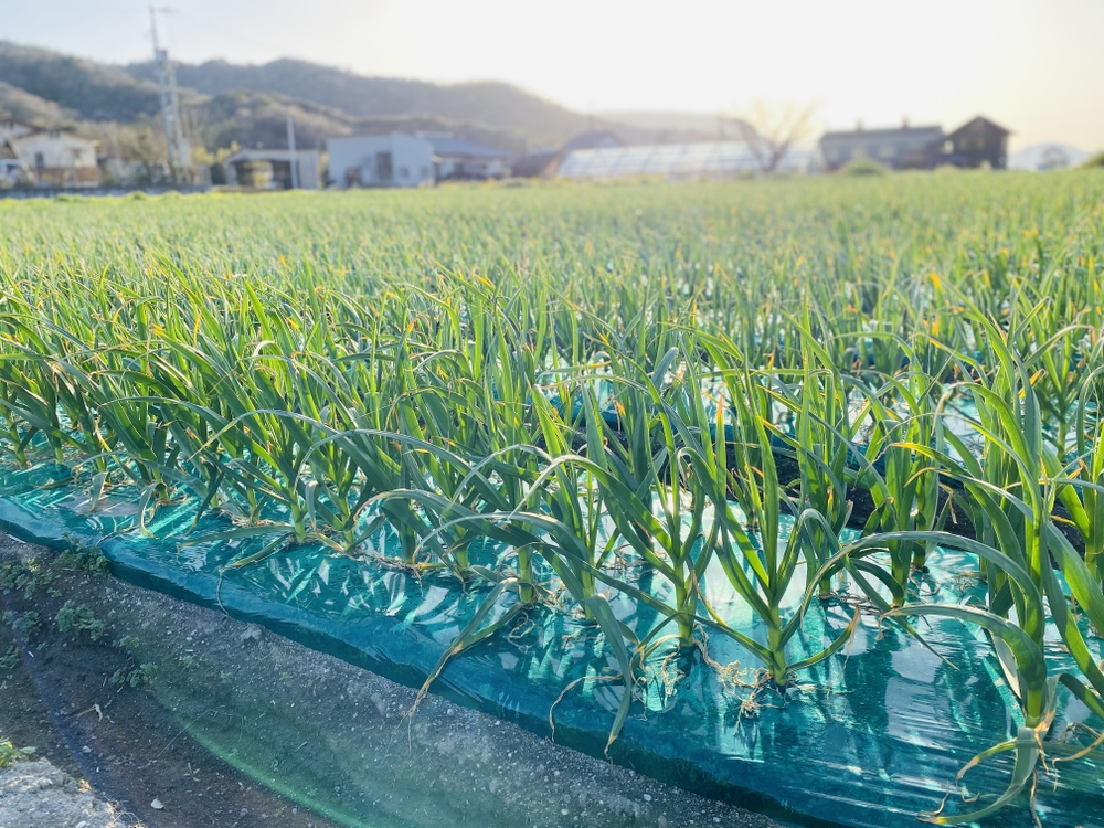 春になり、ニンニクの収穫まで