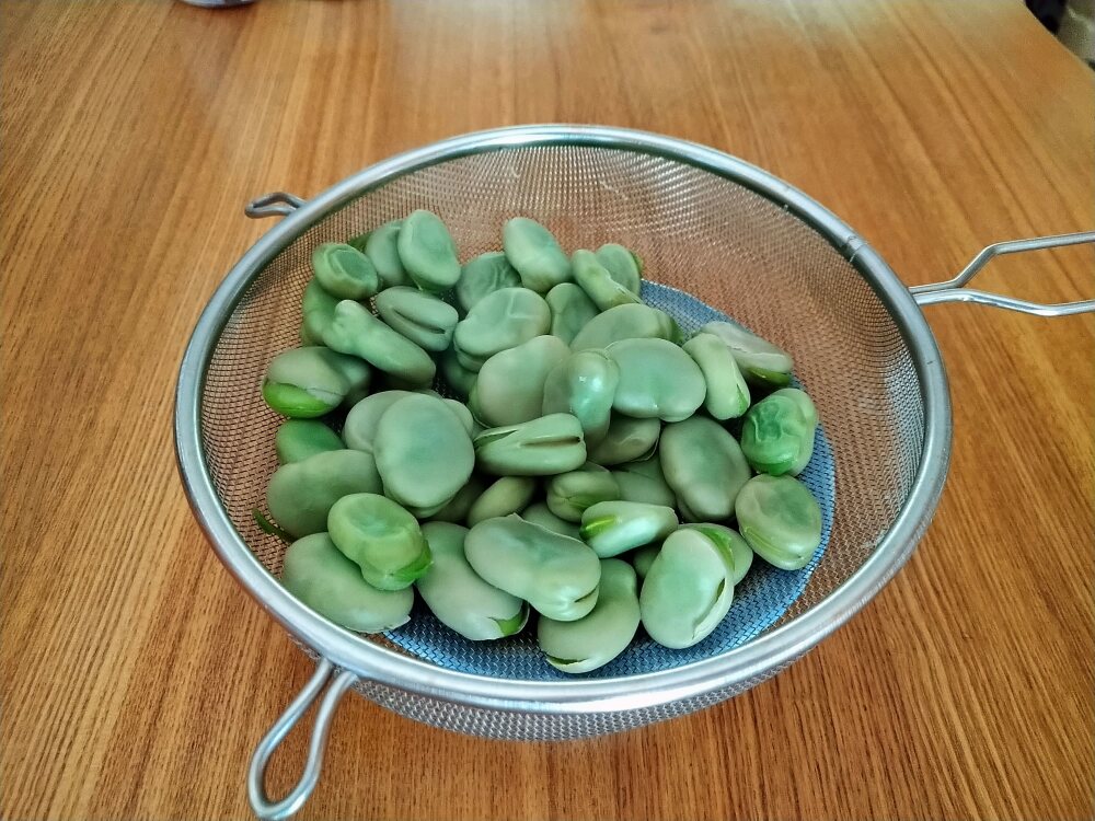 先日、そら豆を採ってすぐ茹でて頂きました。