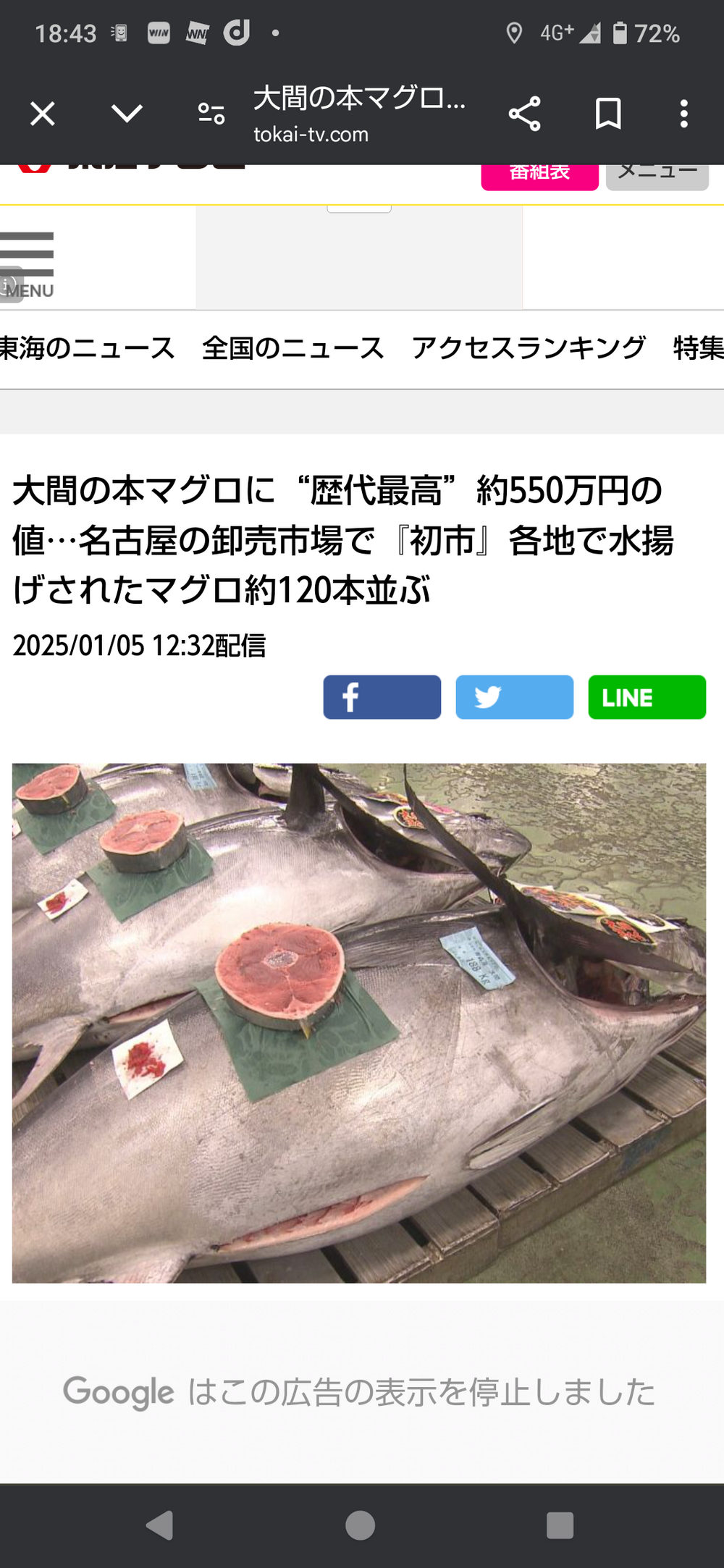 令和7年1月5日に弊社から出荷した名古屋卸売市場にて高い評価を頂き大間産本マグロが開設史上最高値で競り落とされました。