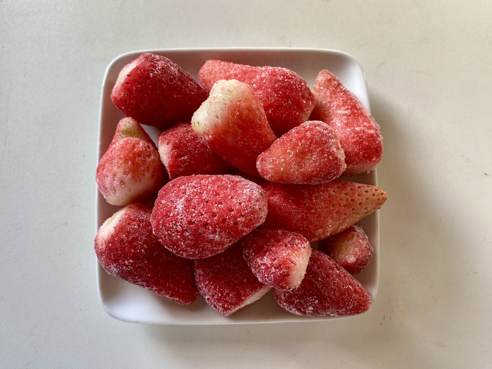 完熟&採りたてのいちごを食べやすいようヘタ取りし、美味しさを損なわないよう冷凍いたしました。