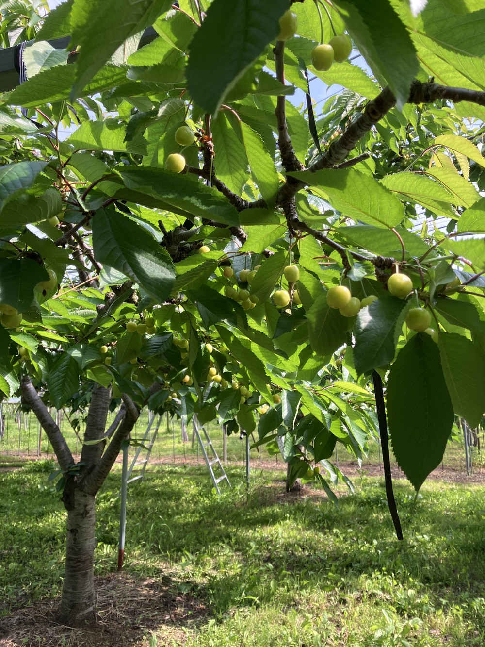 今朝は7時から、さくらんぼハウスの雨よけのビニール張りでした。