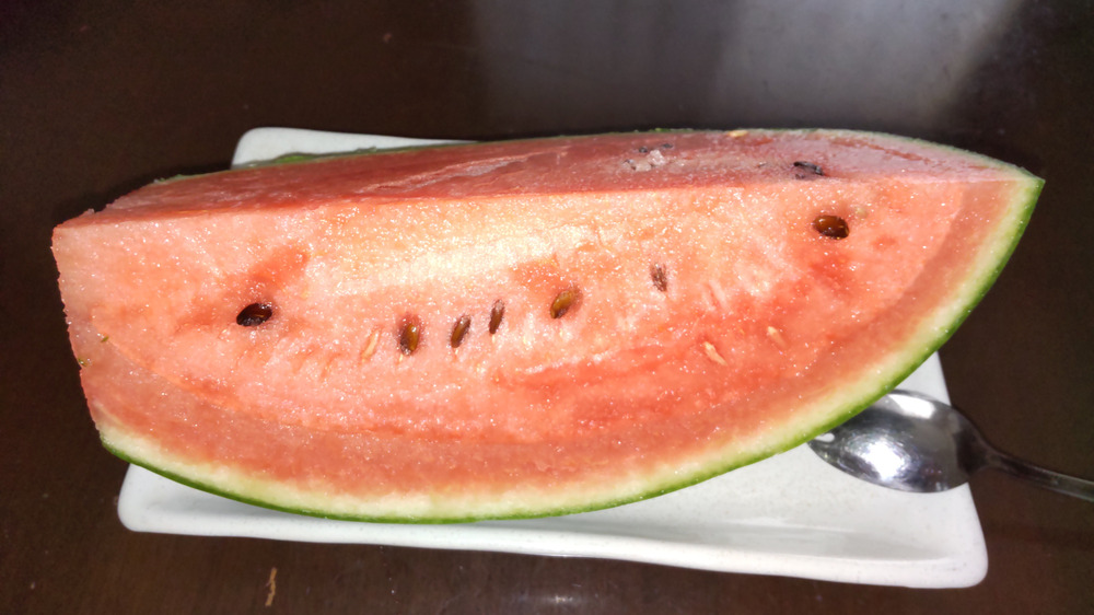 『姫まくら』という品種で、形は楕円形、糖度は12〜13度、外皮は4〜5mmと薄いスイカです。