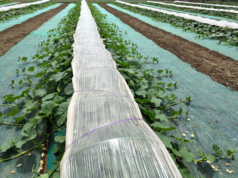 カボチャもビニールトンネルからはみ出す程に伸びて来ました🎃