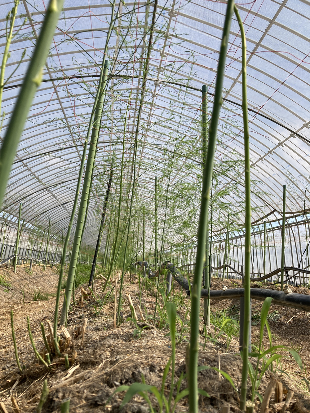 春の収穫を終えた株をぐんぐん伸ばし、夏に向けて力を蓄える、アスパラにとってとても大事な時期です。