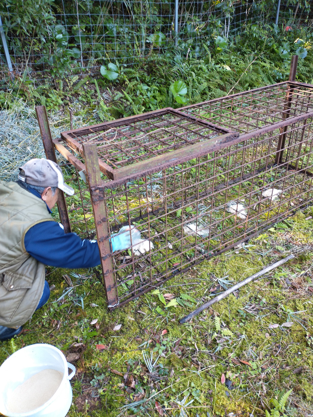 まずは餌となる大好物の米糠(こめぬか)を置いて食べさせ、慣らしていきます。