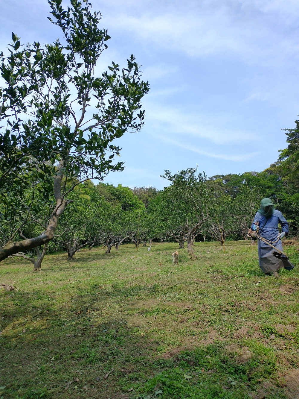 タンカン園の草刈り作業。