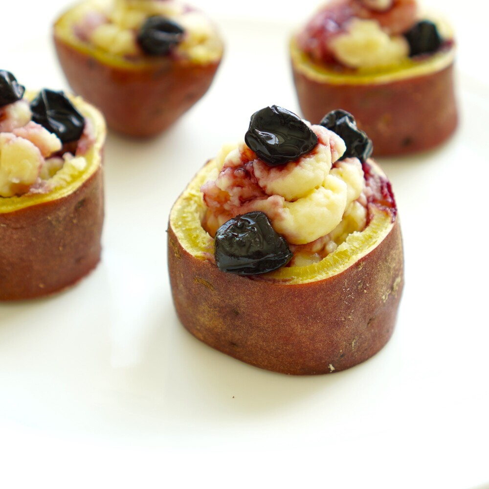 さつまいもモンブラン・ブルーベリーソースがけ