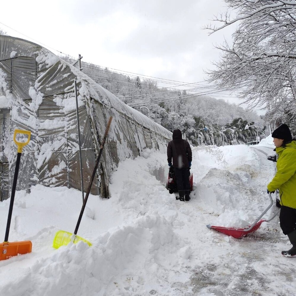 ビニールハウスの倒壊とブルーベリーの枝の雪折れを防ぐため、