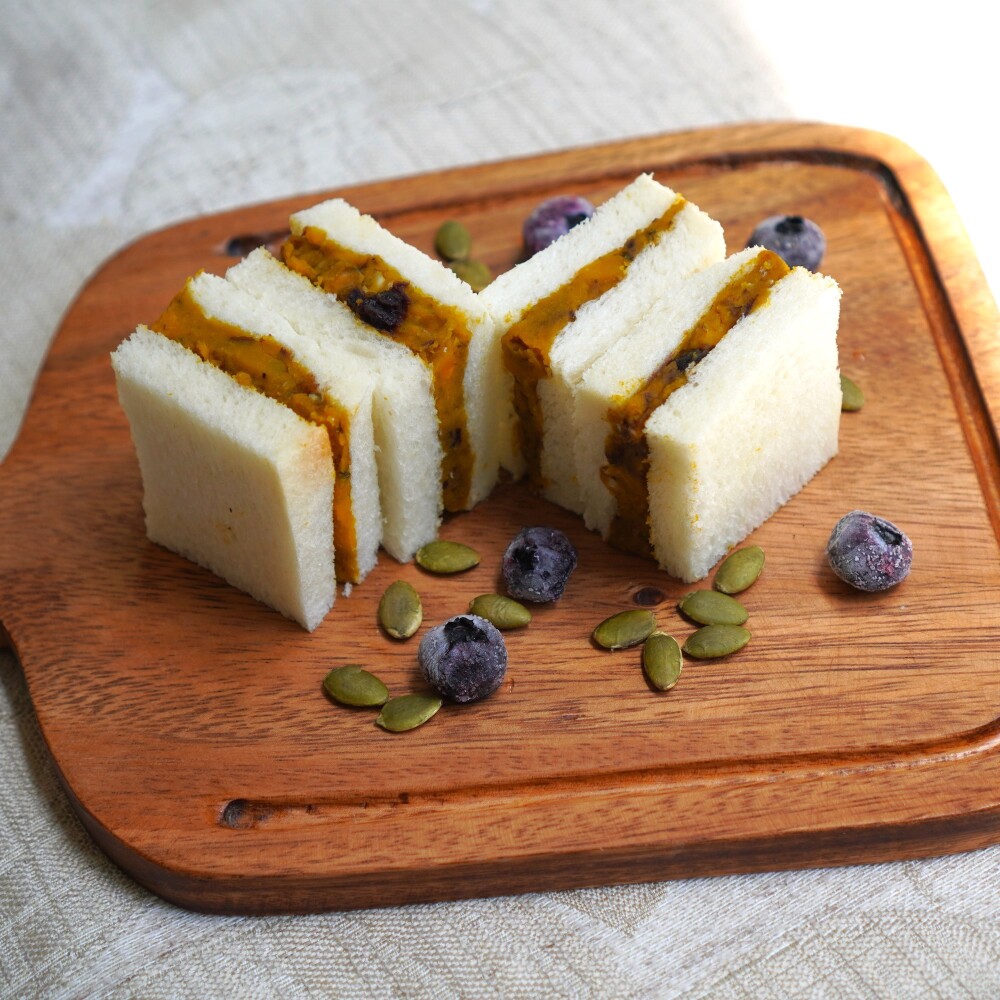 かぼちゃとブルーベリージャムのサンドを作ってみました。