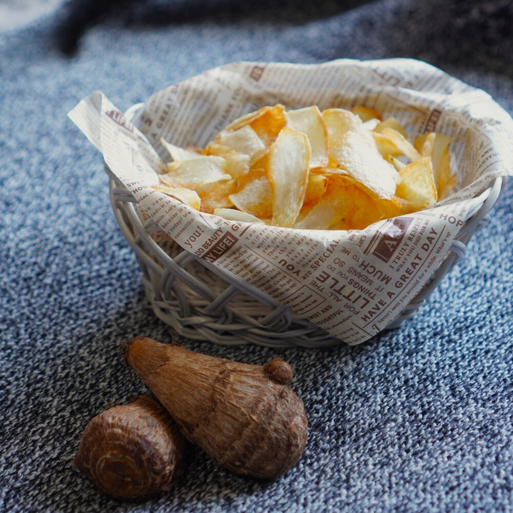 うちで作った金澤伝燈寺里芋でポテトチップスを作ってみました。