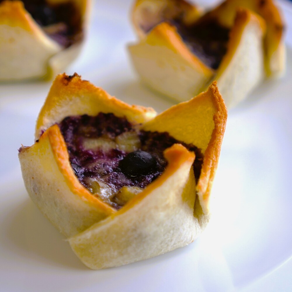 食パンカップに冷凍ブルーベリーとバナナを入れて、