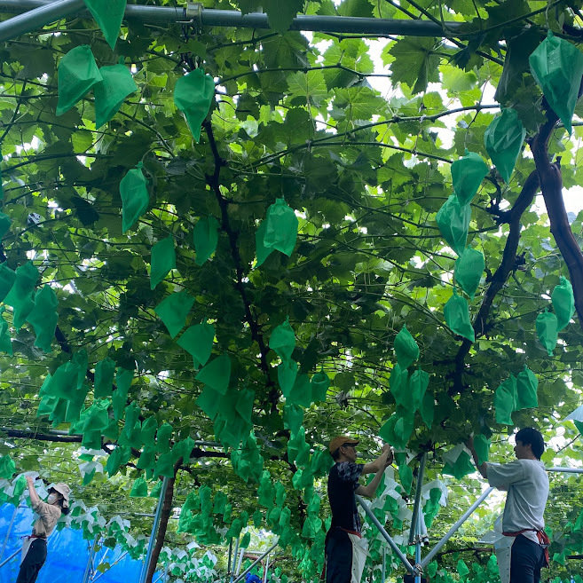 Hoshina Farmではシャインマスカットの袋掛けも始まっています!