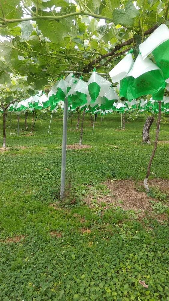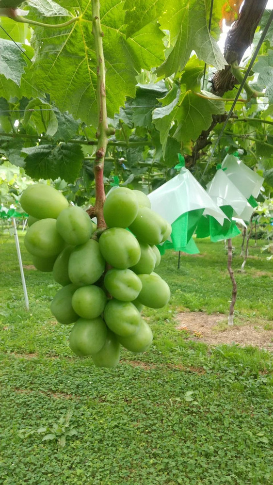 Hoshina Farmのシャインマスカットは袋で覆われていますが