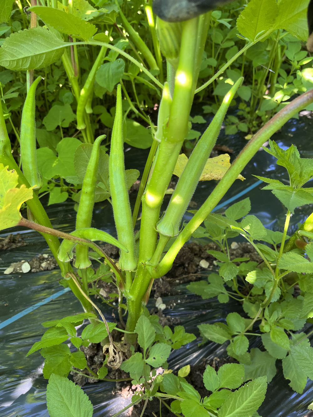 オクラは放っておくと曲がる習性があるのですが、毎日欠かさず収穫することで綺麗に真っ直ぐなオクラが採れるんです😆