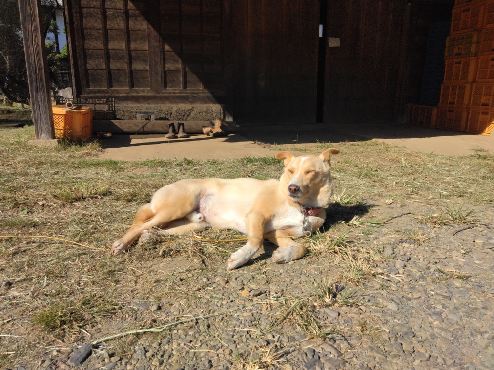 写真は恒例の「今日のコタロー(畑見回り犬)」です。