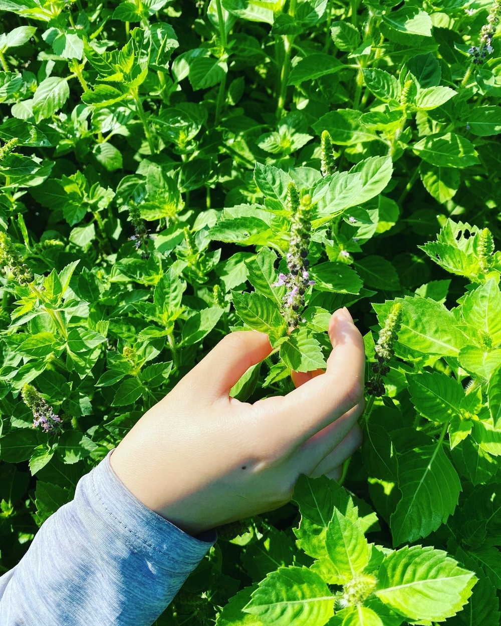 ホーリーバジルの花をお酢に漬け込むと花の成分等が溶けだし色鮮やかなピンク色になります🥰