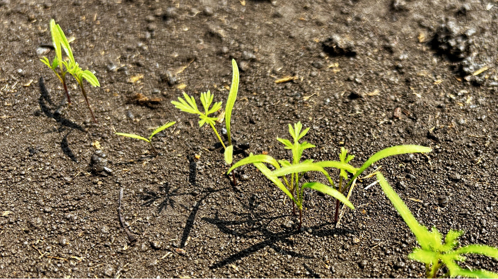 8月11日に種まきをしたニンジンさん、本日本葉が出てきていました(2枚目の画像)。