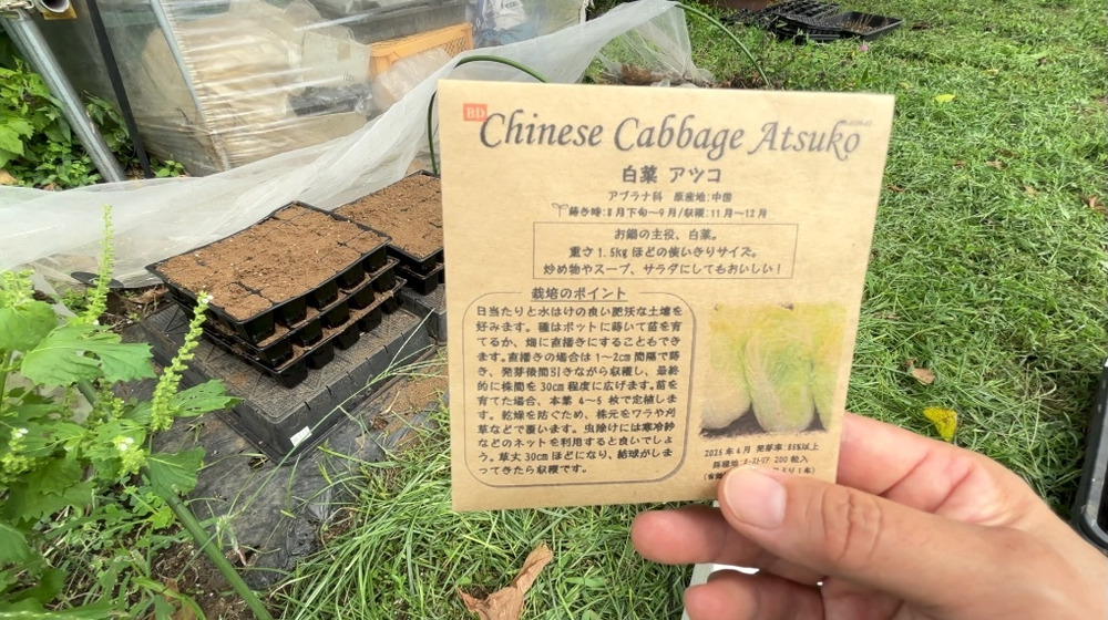 固定種白菜「アツコ」の種を播きました。