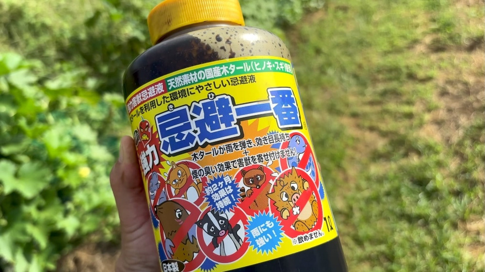 ということで動物たちに「ここは入っちゃダメだよ!」の線引きをしたく、当農場では自然に還る成分の忌避剤を使っています(画像3)。