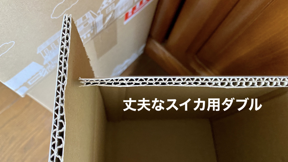 スイカ箱は9㎏以上のスイカが入ることもありますので、通常の段ボールではなく「ダブル」という丈夫な箱を使っています(画像3)。