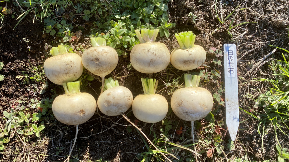 今シーズンデビューした新種の固定種かぶ「白の宝石」の採種準備を行いました。