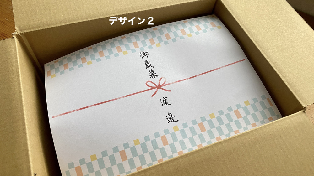 大切な方への年末年始のご挨拶には、3通りのデザインから選べるお名前入りの熨斗(内のし)もお付けします。