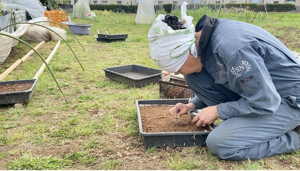 当農場では大型ビニールハウスによる加温保温の育苗を行わず、外気温が発芽温度に達してから種を播きます。
