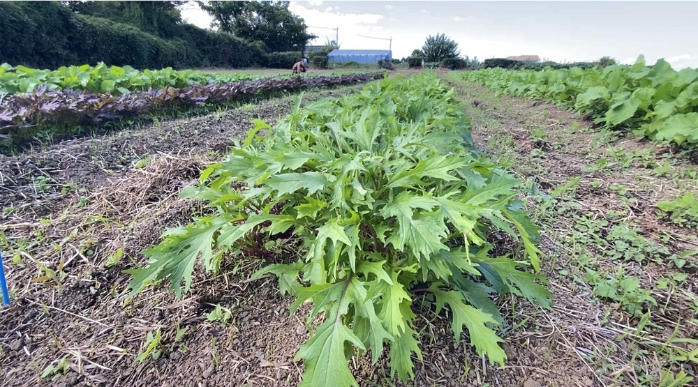真黒なす・長なす・緑なす・紫蘇の実(青・赤)・ニラ・赤からし菜・小松菜・水菜(緑・赤)・間引き菜(人参・カブなど)・ベビーリーフ(ルッコラ他、葉物野菜)・雪化粧かぼちゃ・鶴首かぼちゃ・姫冬瓜