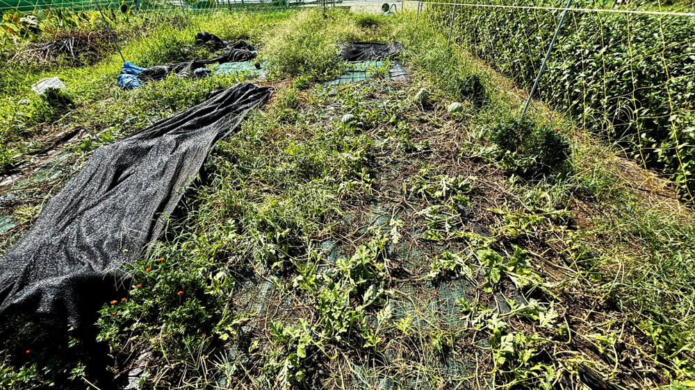 そしてこの時期のカラカラ高温天気で枯れてしまわないように、遮光ネットをかけて薄〜い日陰を作ってあげています🏖️(1枚目の画像)