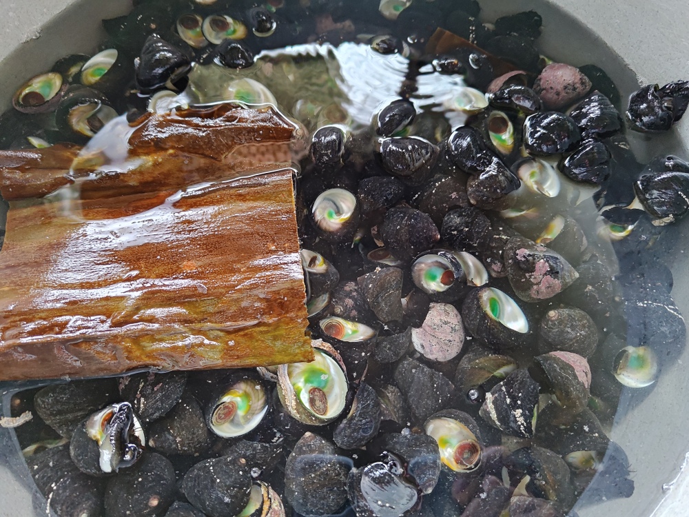 本日は、当店人気の「黒ニナ酒茹で」を仕込みました!