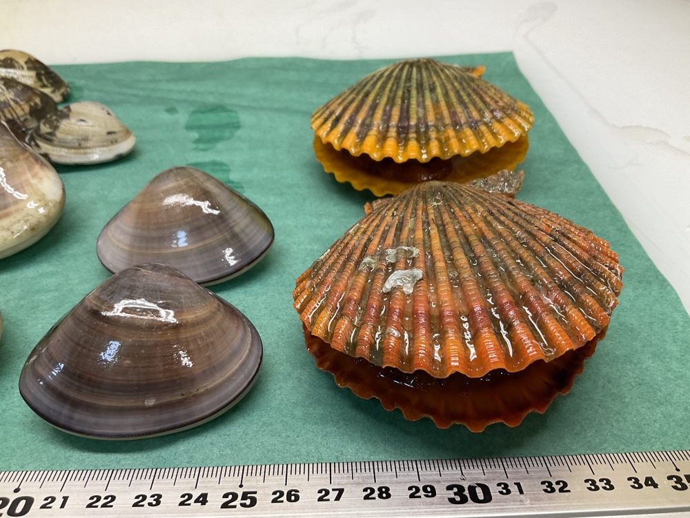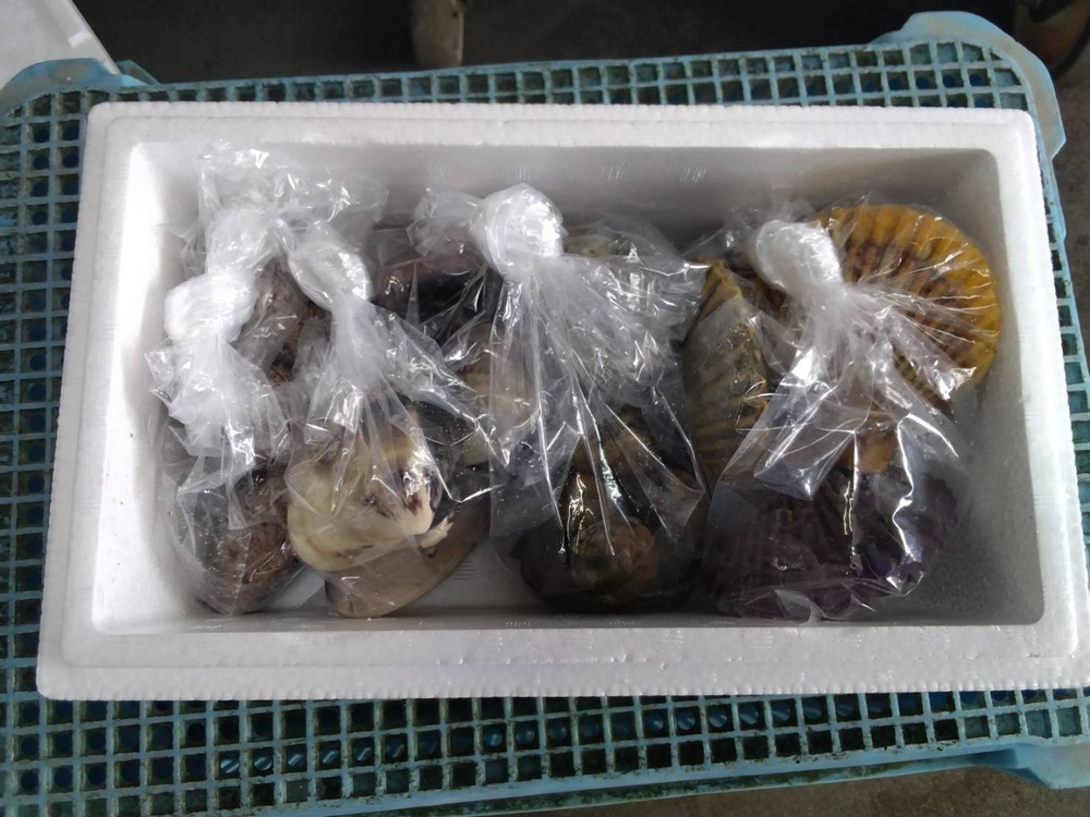 底曳き漁で水揚げしたもの、素潜りで採ったもの、現地スタッフが手掘りで水揚げしたもの