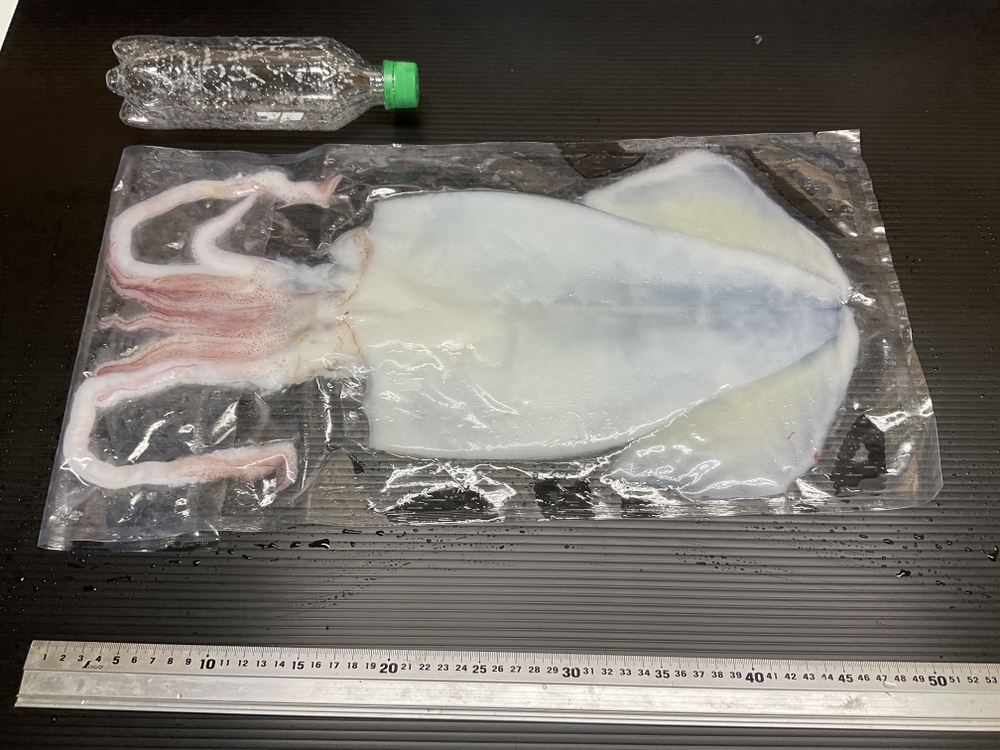 釣りもの、1パイ500g以上、得大サイズの白イカのみ使用、を条件とし、特大真空袋に全体像が分かるようにパックしております。