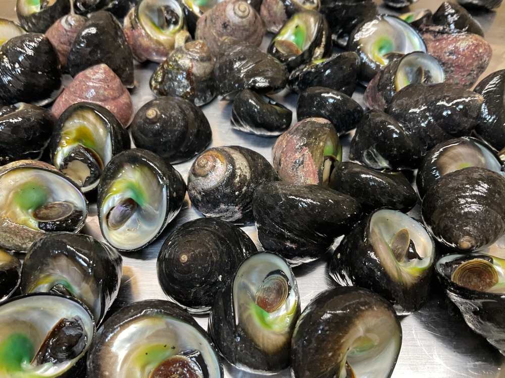 ほかにも、冷凍ストックしていた商品、自家製海鮮キムチシリーズの新作!白バイ貝で作った「チョゲチョッカル」もいくつか追加しました🇰🇷