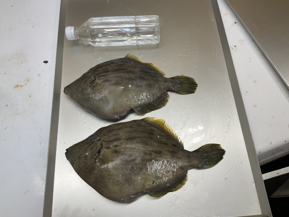 昨日の大きさの本ハギは初めてで、親戚の叔母が刺身につくってくれて肝醤油にて食べ大変美味しく頂きました。残りの骨周りはお味噌汁にして最高の食事を味わいを堪能させて頂き嬉しくも有りました。