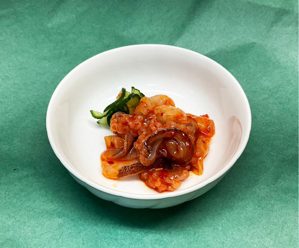 ケジャンもそうですが、イカ自体の味が分かるよう、唐辛子の甘さと旨味を活かしておりますので、辛さは控えめです。