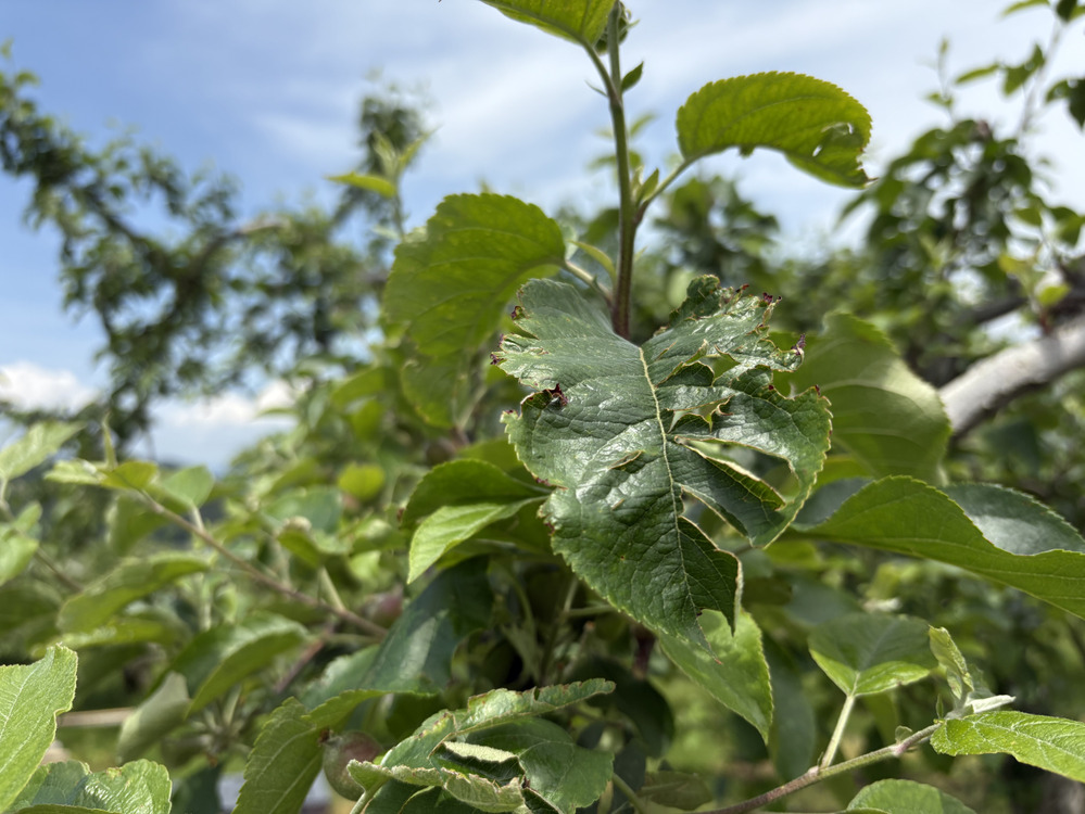 秋映の畑に被害が多くこれから実の成長につれて傷などが分かりやすく出てくるとおもいます。