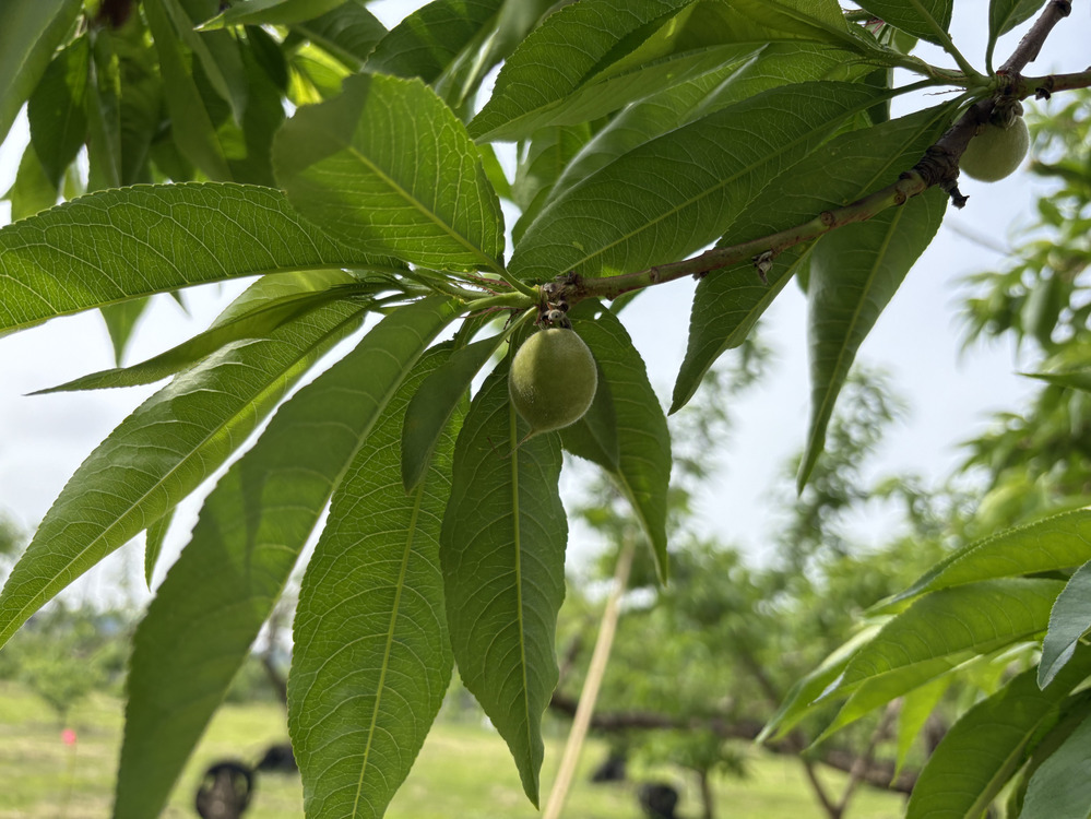 6月に入りましたがまだまだ肌寒い日も多く果物の成長は、例年よりややスローペースとなっております。作業の方は毎日摘果をコツコツ進めております!