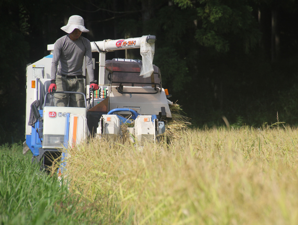 自然栽培ササニシキの天日干しから、刈り取りスタートしています。